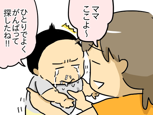 探して見つからなくてうわあぁぁー!!!ってなってるところをこっそり見てるとママを見つけて二度見してますます泣く、とか本人必死なのに可愛くて仕方ないド変態ママです。