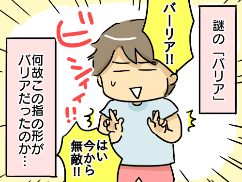 うちの息子(年中)も最近なぜかこのバリアの指の形を作ってることがあります(笑)