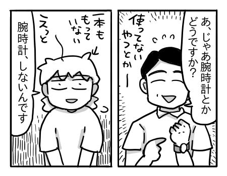 カテゴリ : 日常 自分がいかに金目の物を持っていないか実感した話 2024年06月08日 LINEの更新通知が終了!アプリで読者登録してね♪前回はこちら↓ 今日の漫画どうぞ~♪ひとつも嘘ついてませんからただ、正直に答えただけだから ↑アクセサリーも腕時計も靴下も苦手Tシャツに裸足で働ける職場最高最近宅配便がよく届くのでうっかりこういう営業とかに出ちゃ ... 続きを読む