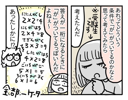 カテゴリ : すーちゃん 九九で「が」がつく時、つかない時。 2026年01月23日 公式LINEがリリースされました!友達登録してね~♪↓友達登録はこちらから↓https://lin.ee/WYjaveG登録者数3000人突破!ありがとうございます♪前回はこちら↓ 昨日の漫画にはTwitterで「伸びます!」「本当です!」「個人差あるけど伸びます!」というリプがたくさんつき ... 続きを読む