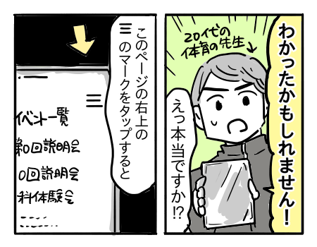 カテゴリ : すーちゃん 受験生すーちゃん㉗【Web出願ページの在処は…】 2026年01月09日 公式LINEがリリースされました!友達登録してね~♪↓友達登録はこちらから↓https://lin.ee/WYjaveG登録者数3000人突破!ありがとうございます♪前回はこちら↓ この話を最初から読む★その㉗どうぞ~♪※今日は更新遅れました!ごめんなさい~他の先生達も巻き込んでしまっ ... 続きを読む