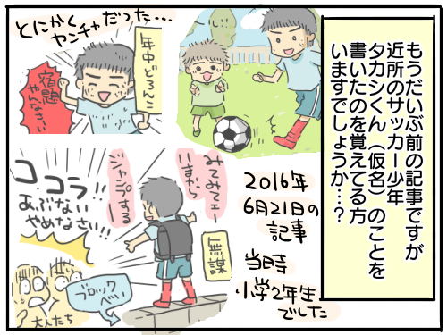 男の子っていつ、子どもじゃなくなるんだろう 2020年06月28日 4年前の漫画がこちら…もう同じ人とは思えないほんのこのあいだまでは年中水浸しで泥だらけだったのに男の子っていつ、子どもじゃなくなるんだろう感嘆にほんの少しの寂しさが混じった複雑な感情になった近所のおばちゃんでしたタカシくん、そうまにコーチしてくれてありがとね!!わたしも男子ママこなれてきたかな…?そうまのサッカーを褒めたら…好評連載中!!第17話公開してます お仕事依頼についてはこちら★個人的なメールはこちらにどうぞ~ryu.tamako2@gmail.com 「そうま」カテゴリの最新記事 タグ :#コミックエッセイ#エッセイ漫画#絵日記#漫画#サッカー#少年#小6#小学生#小1#近所のおばちゃん < 前の記事次の記事 >